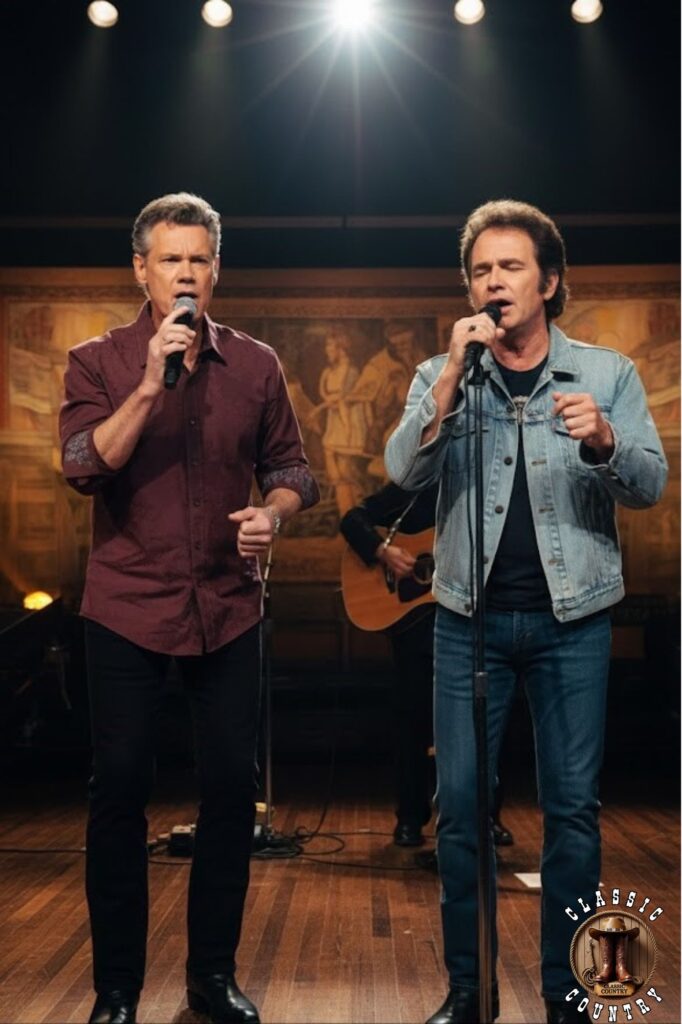 Musically, the track blends classic country elements with gentle precision. The soft strum of acoustic guitars, combined with expressive steel guitar lines, creates an atmosphere that highlights the sincerity of the lyrics. The warm baritone of Randy Travis blends naturally with the seasoned voice of Merle Haggard, forming a moving dialogue between two generations of country music. Their vocal exchange brings the wistful narrative to life, allowing every phrase to carry genuine emotional weight.